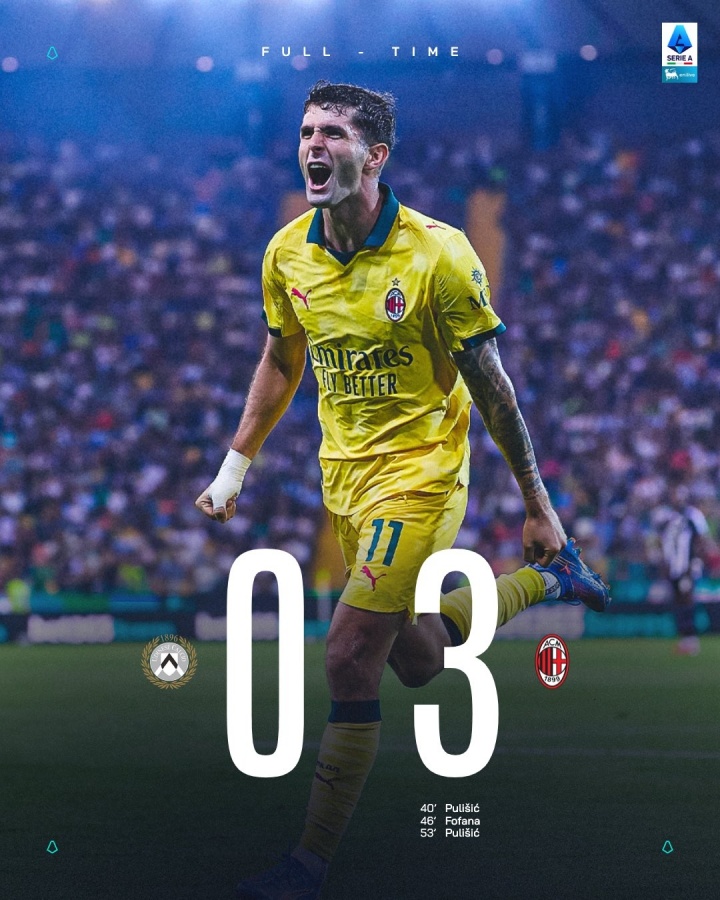 9月21日讯 意甲第4轮,米兰3-0完胜乌迪内斯,取得意甲三连胜。