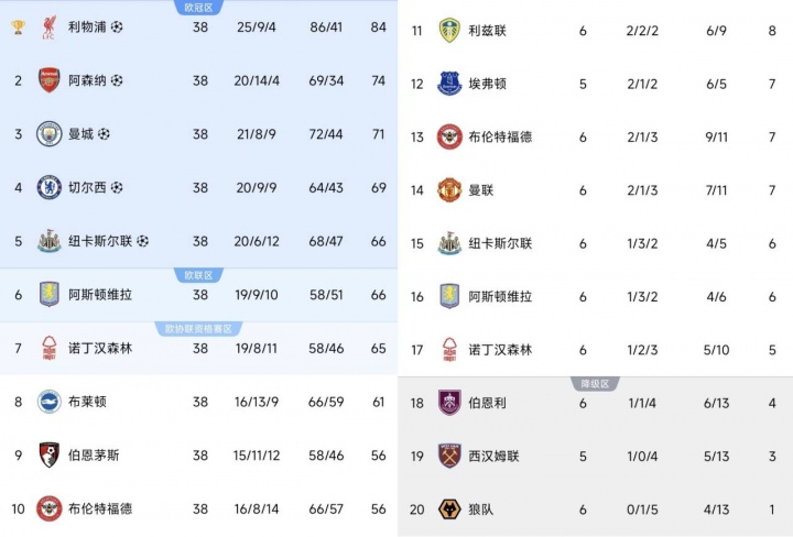 当前英超的下半区出现了不少熟悉的面孔。上赛季英超第5、第6、第7的纽卡、维拉和森林,目前刚好排在15/16/17名。
