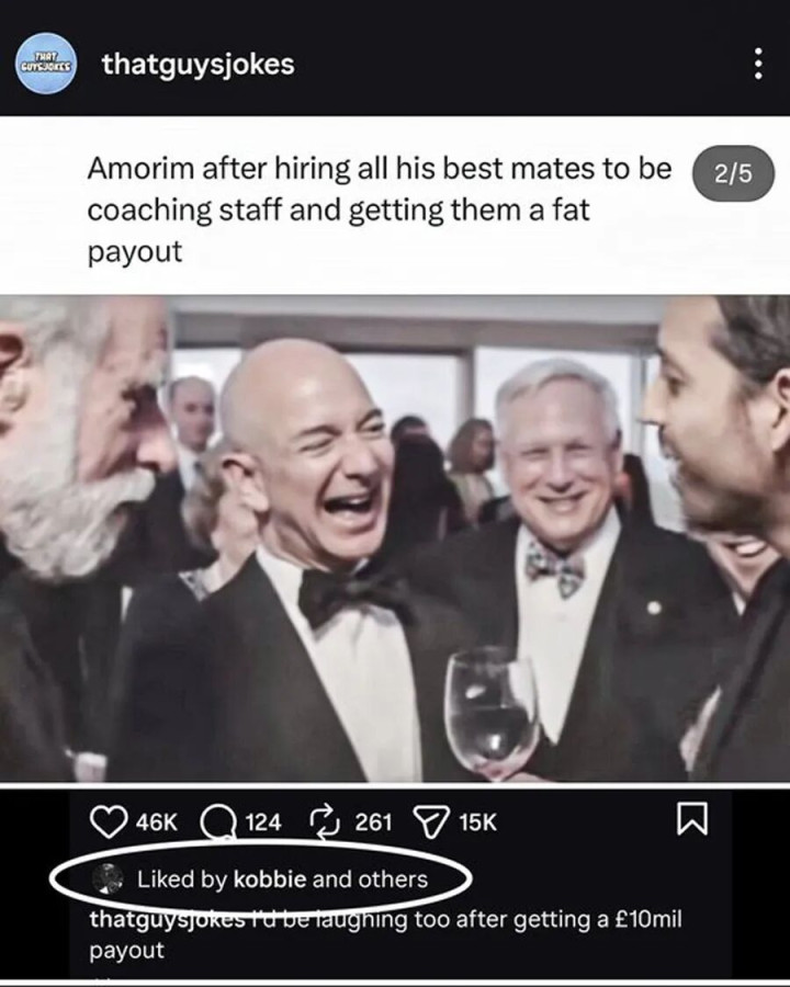 在曼联解雇前任主帅鲁本·阿莫林之后,20岁的英格兰中场球员科比·梅诺在社媒点赞了一条嘲讽阿莫林贪财的帖子。该网文嘲讽阿莫林带着自己的指导教练员组到曼联,然后主动造成被解雇,以便得到丰厚的补偿。