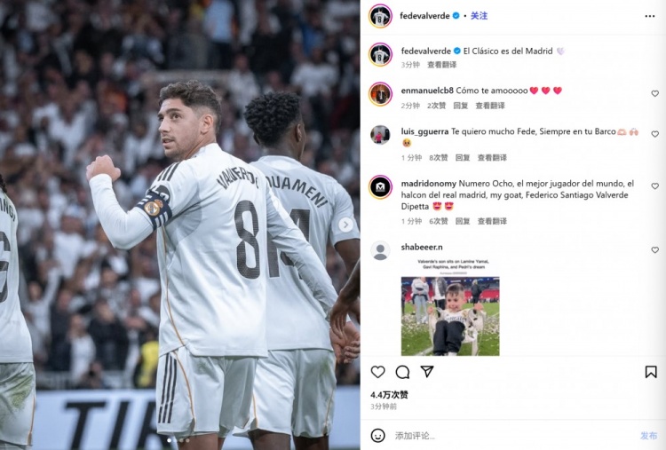 皇马领队 巴尔韦德社媒晒振臂庆祝照:国家德比属于马德里!