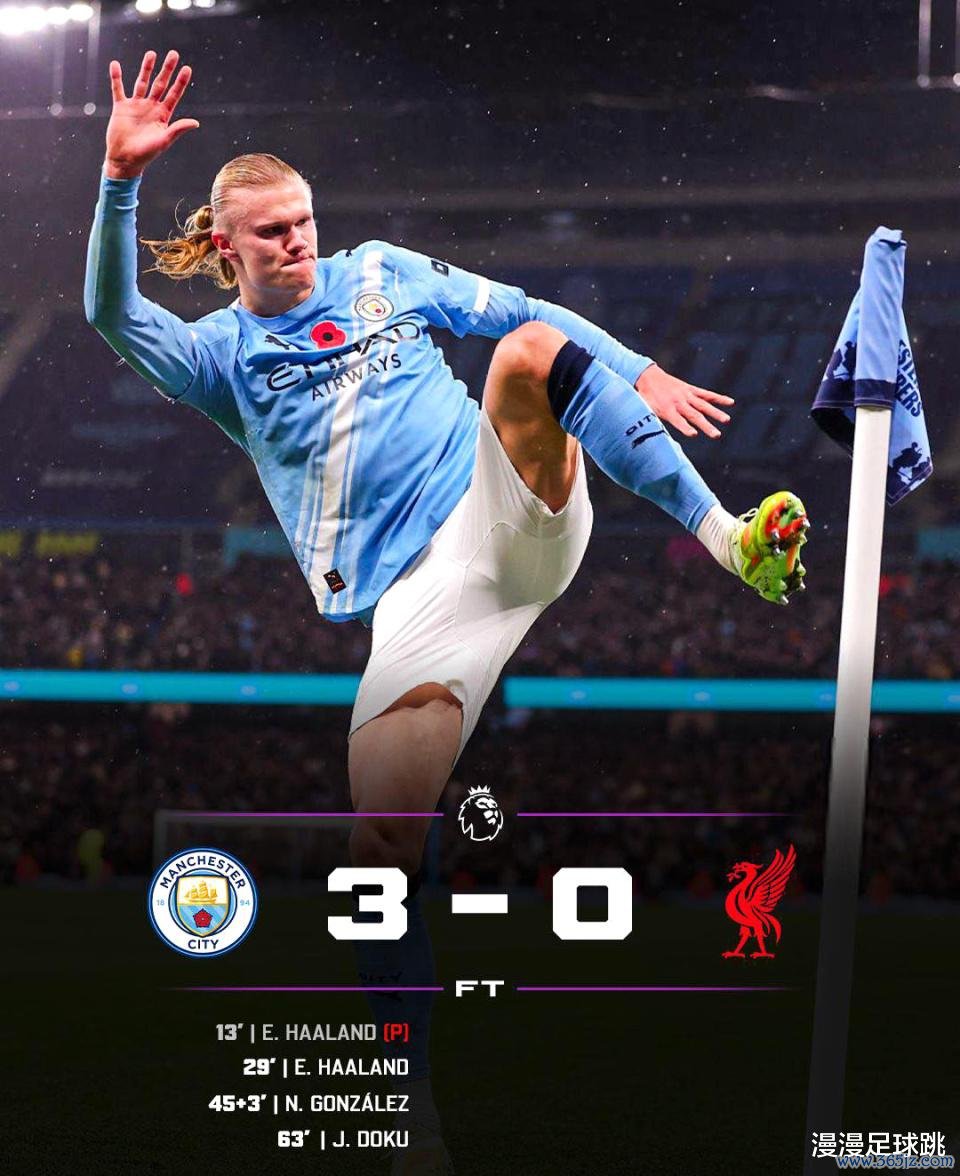 这一夜英超最燃的赛事 毫无疑问是曼城对阵利物浦。瓜迪奥拉一直憋着一股火,上赛季被英超一年级新生斯洛特爆击,还被他抢起了英超5连冠霸业,现如今红军竞技状态 低迷起伏巨大,正是痛打“落水狗”的好时机,全场赛事 下来,蓝月军团全场全面压制红军,把他们踢得找不到北。先是多库造点,但哈兰德主罚被神扑出来,但是努内斯抢到球权并助功 哈兰德顶球破门曼城1-0领跑 ;随后范戴克得分 被吹无效;不过冈萨雷斯冷射再下一城,曼城将比分扩大到了2-0;易边再战,红军背水一战只能疯狂反扑,但是加克波和萨拉赫先后错失良机,而曼城在第72分钟再下一城,多库内切后的世界波直挂死角,基本杀死赛事 。