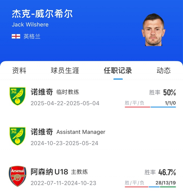 10月13日讯 名记罗马诺以标志性的“Here We Go”宣布,33岁前阿森纳中场球员威尔希尔出任英甲球队卢顿的主帅。
